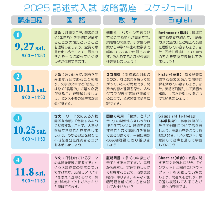 ■講座内容■ 国語・数学・英語で1講座とし、合計4講座を開講します。1講座から申込可能です。